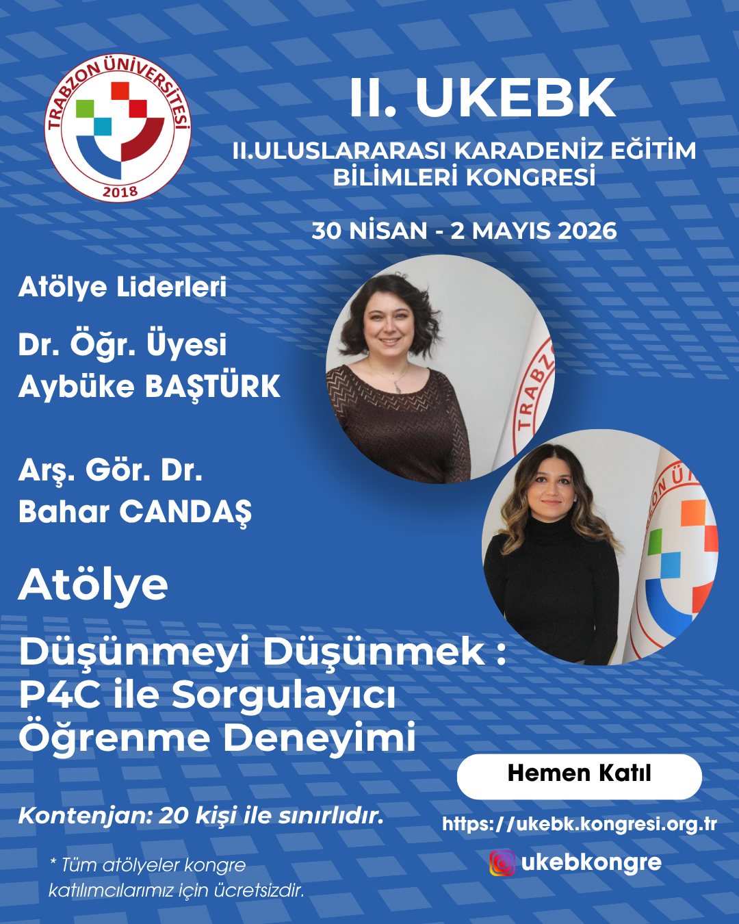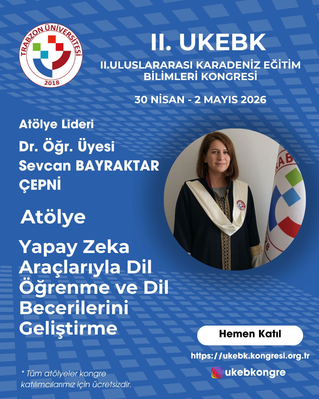 Siz değerli bilim insanlarını hibrit (yüz yüze ve çevrim içi) olarak gerçekleştirilecek olan UKEBK II'de ağırlamaktan mutluluk ve onur duyarız.